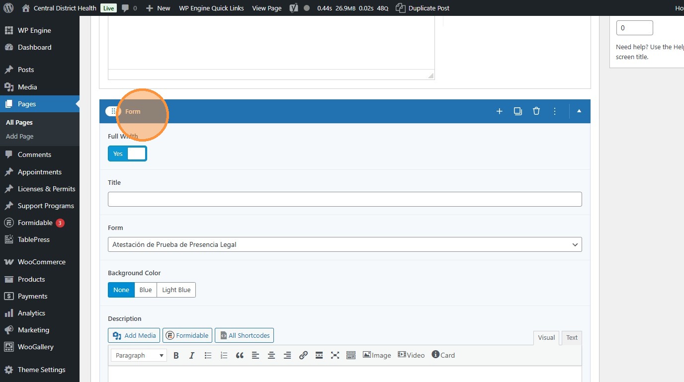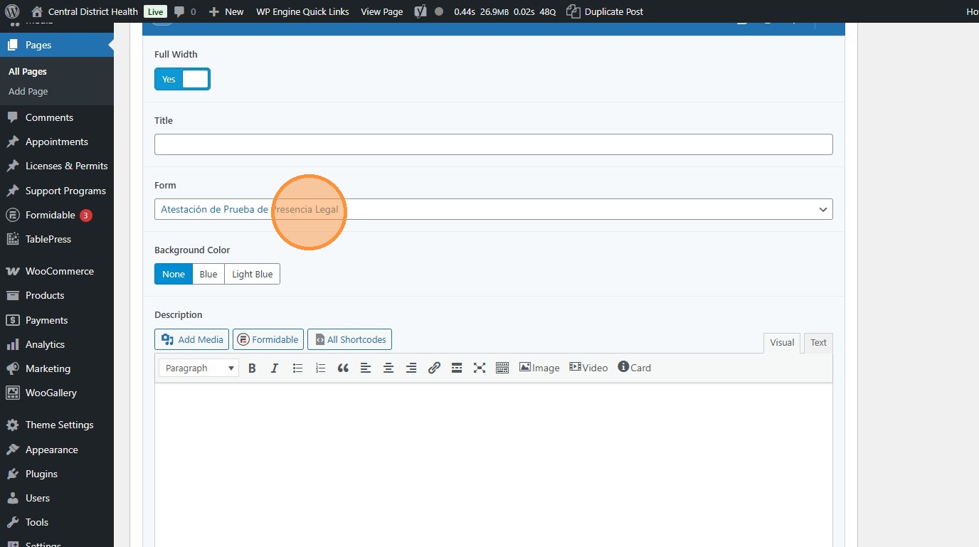 4. Click this dropdown to pick an already-created form and add it to the page.