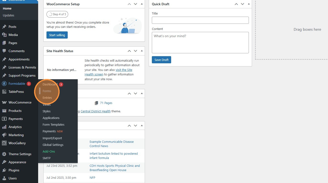 Section titled “1. Navigate to https://cdh.idaho.gov/wp-admin/, hover Formidable then click “Forms”.”