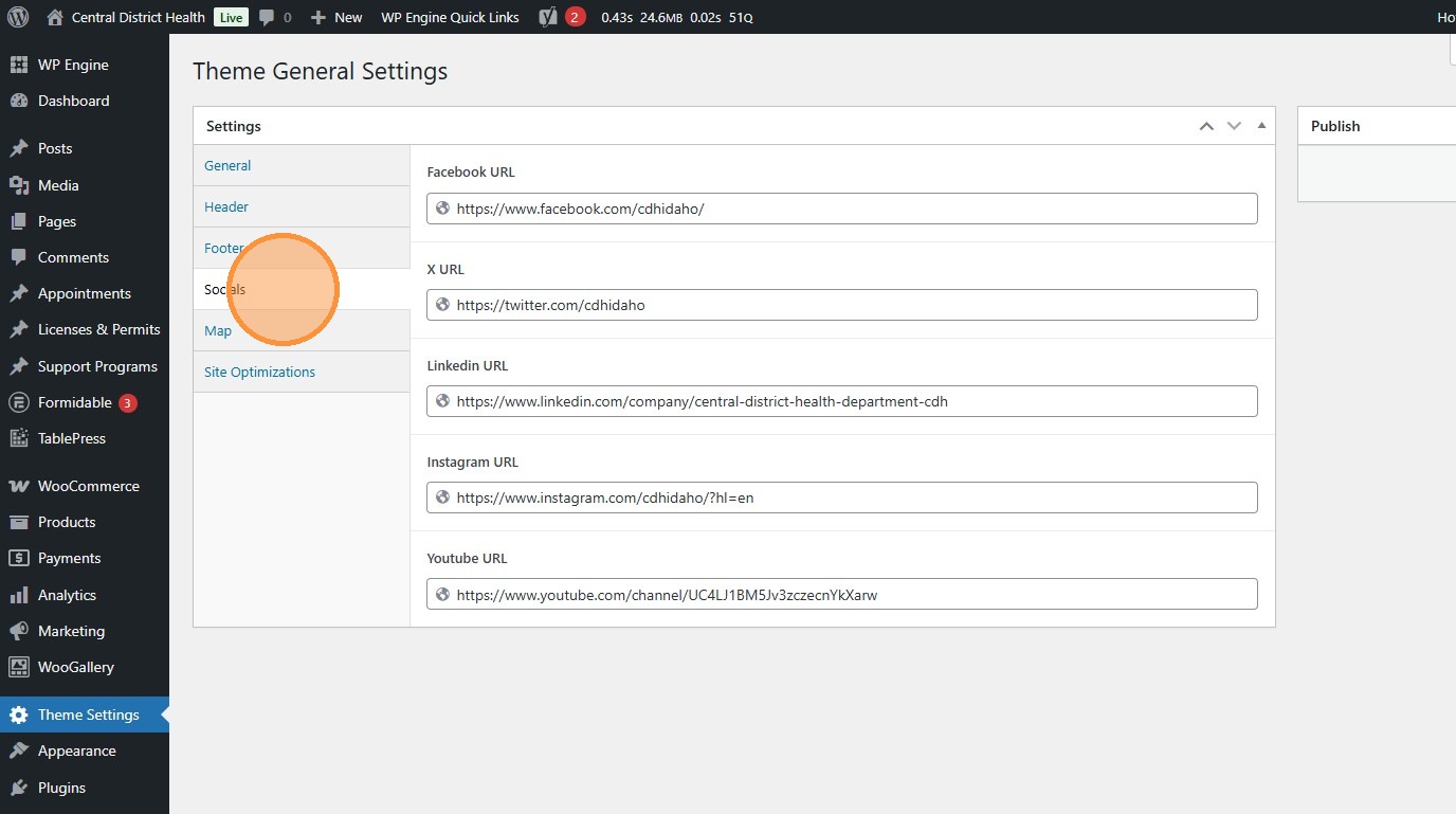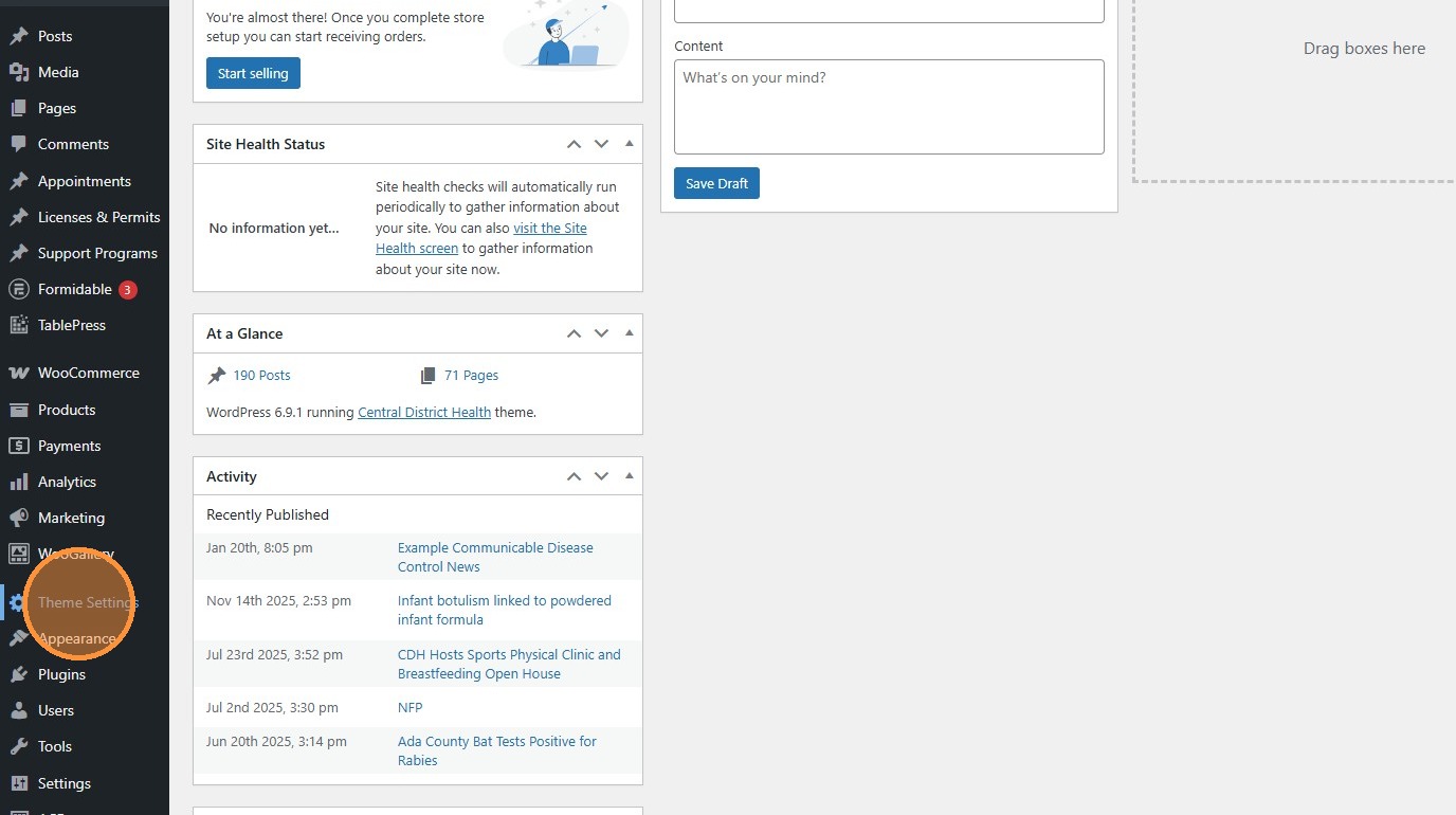 1. Navigate to https://cdh.idaho.gov/wp-admin/ and click “Theme Settings”