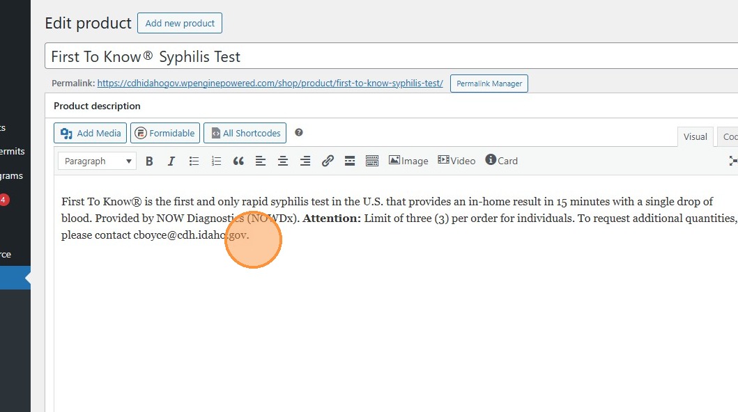 Section titled “4. Use this text box to edit the product description. This will appear on the shop.”