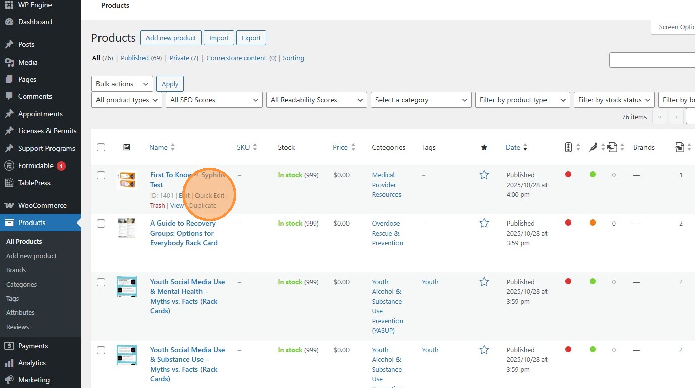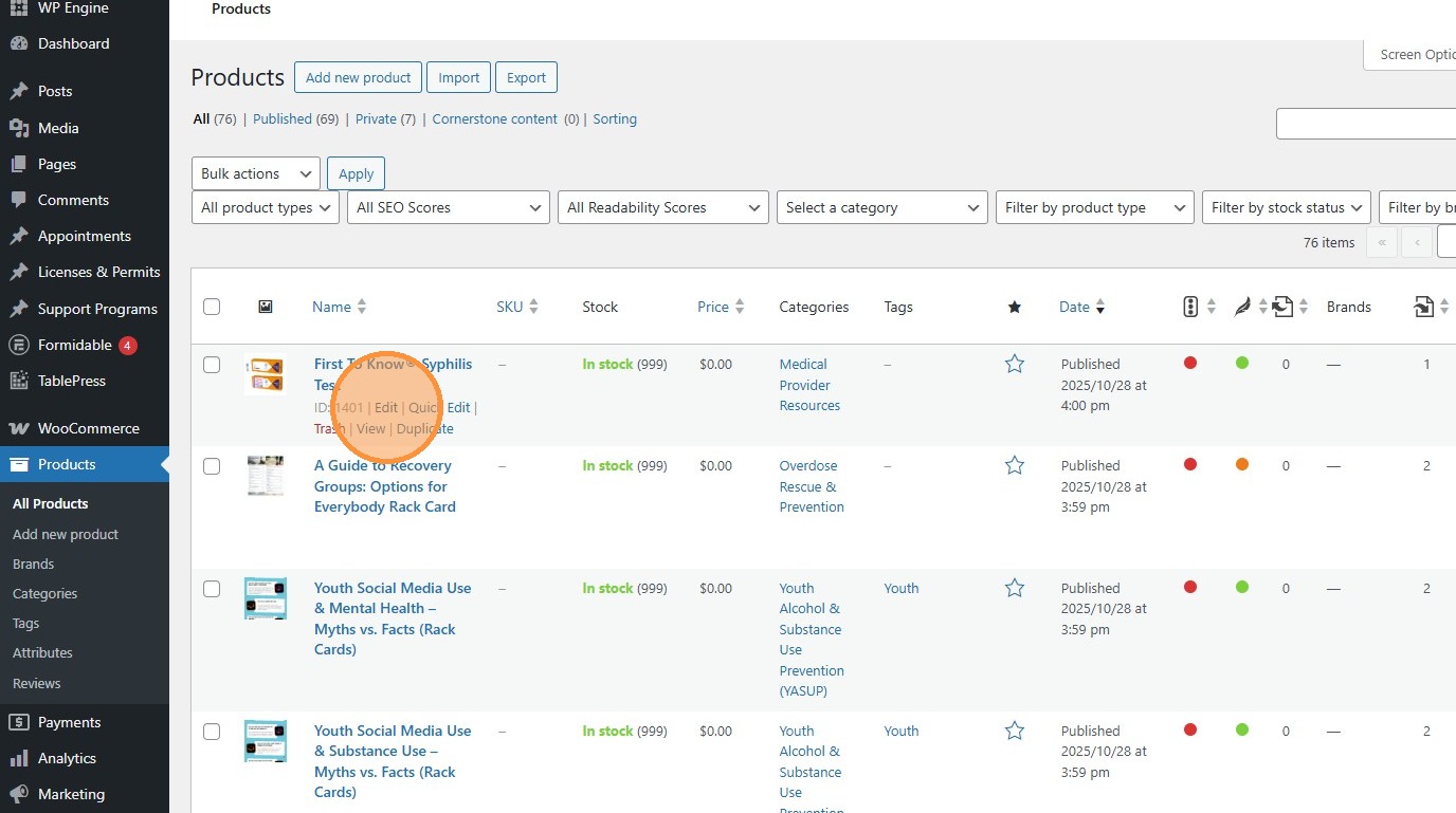 Section titled “3. Click “Edit” to edit all of a product’s attributes, including those found under Quick Edit.”